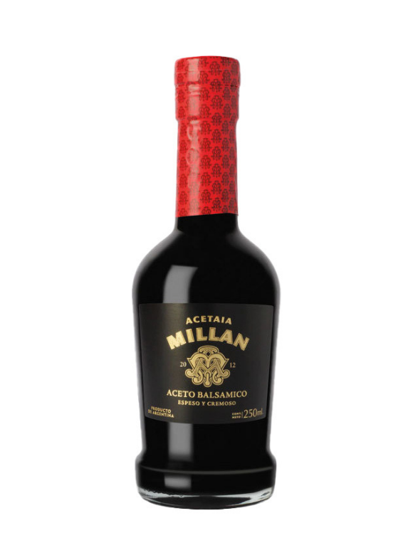 Produzido na Argentina pela prestigiada família Millán, este aceto balsâmico carrega a tradição italiana em sua essência. Envelhecido em barris de madeira, apresenta textura aveludada e um equilíbrio perfeito entre acidez e dulçor, com notas de frutas secas, madeira e um leve toque de caramelo.